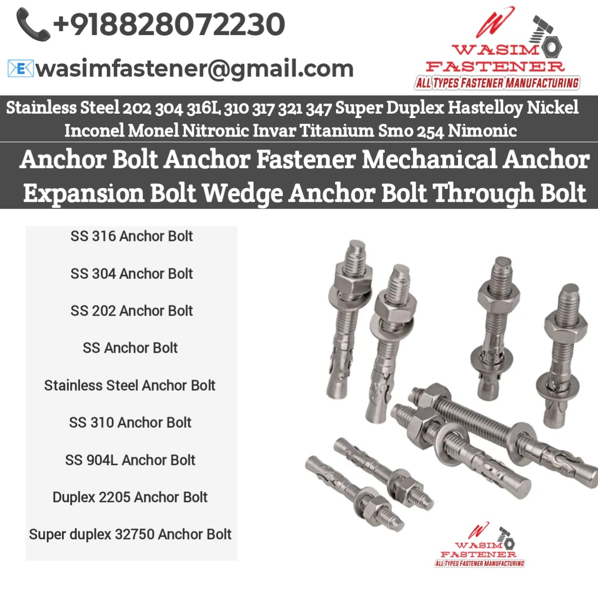 - SS 304 Wedge Anchor Bolt Manufacturer | Concrete Anchor Bolt SS 304