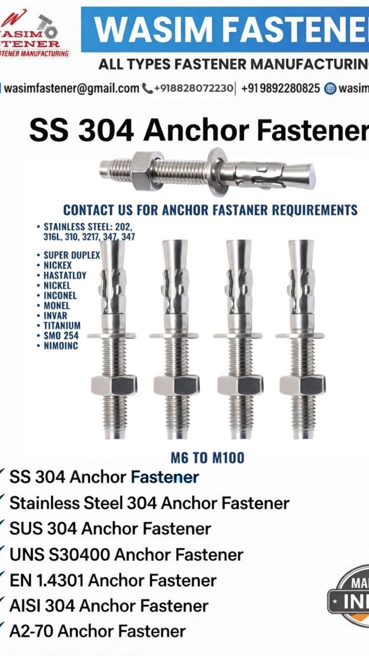 We are a leading SS 304 Wedge Anchor Bolt manufacturer and supplier in India, offering premium quality stainless steel wedge anchors for industrial, construction, infrastructure, and engineering applications.