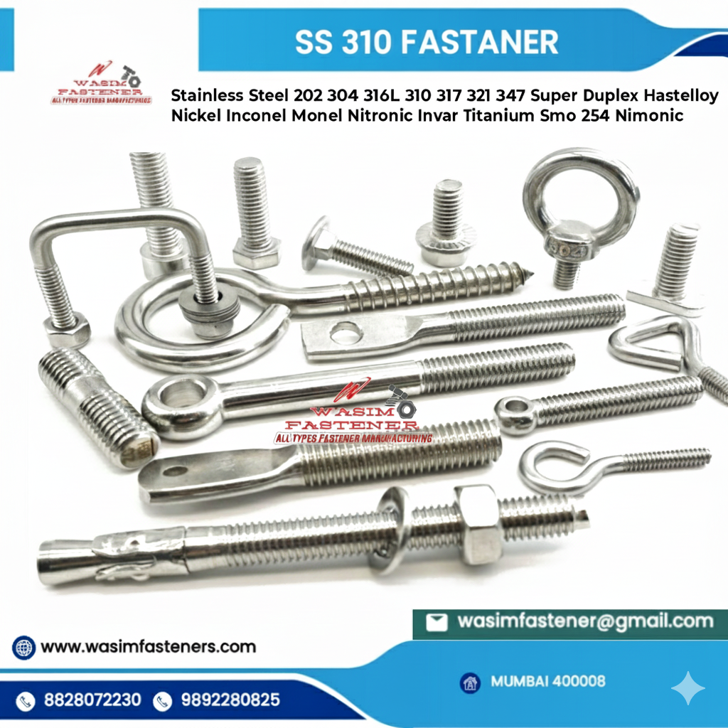 SS 310 Fasteners Manufacturer & Exporter in India | Stainless Steel 310 Bolts, Nuts, Screws & Anchor Fasteners Supplier Worldwide