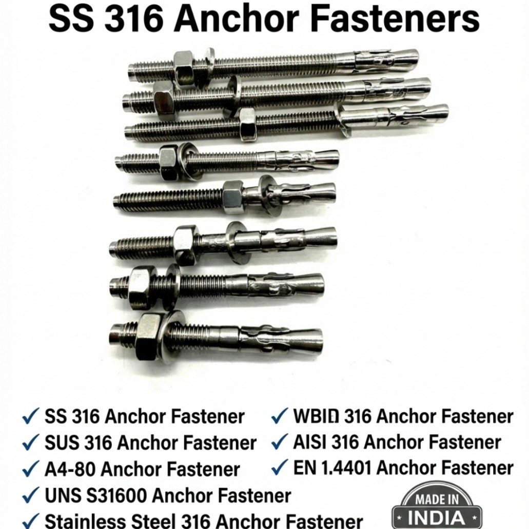 We are a leading SS 316 Wedge Anchor Bolt manufacturer and supplier in India, offering premium quality stainless steel 316 anchor bolts suitable for heavy-duty and corrosive environment applications.