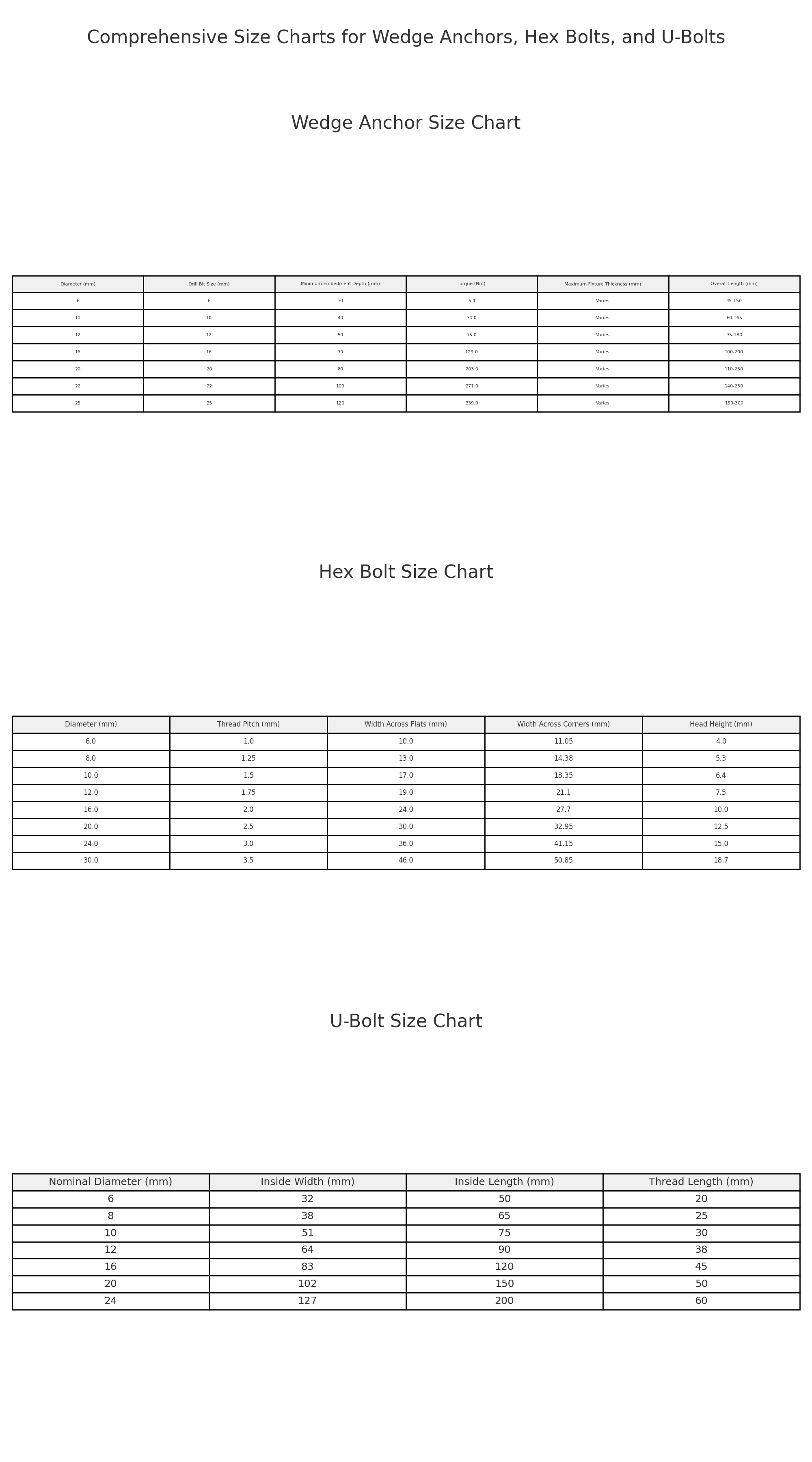 U BOLT SIZE CHART HEX BOLT SIZE CHART WEDGE ANCHOR SIZE CHART