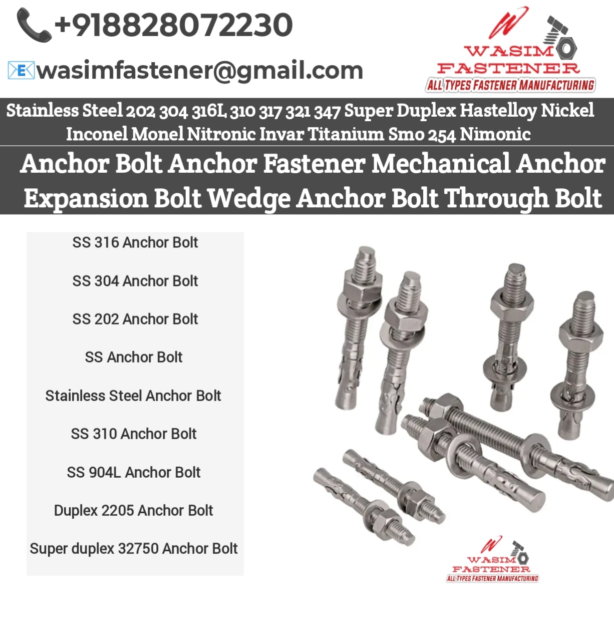 SS 316L Anchor Fastener Manufacturer & Supplier | Stainless Steel 316L Anchor Fasteners Exporter India We are a reliable SS 316L Anchor Fastener manufacturer and supplier in India, offering premium quality stainless steel 316L anchor fasteners designed for highly corrosive and critical environments. Our SS 316L anchor fasteners provide superior resistance against corrosion, chemicals, moisture, and saline conditions, making them ideal for marine, offshore, desalination plants, wastewater treatment plants, chemical industries, oil & gas projects, and coastal constructions. These stainless steel 316L anchor fasteners are suitable for fixing in concrete, RCC, and solid masonry, and are widely used for base plates, machinery installation, steel structures, handrails, cable trays, HVAC systems, and heavy equipment anchoring. We supply SS 316L Anchor Fasteners with nut & washer, available in M6, M8, M10, M12, M16, M20, M24 and custom sizes. All products are manufactured under strict quality control as per international standards, with optional permanent laser marking (SS 316L / size / heat no.) for project traceability. We offer competitive prices, bulk supply, fast delivery, and worldwide export to Qatar, UAE, Saudi Arabia, Oman, Kuwait, Africa, and Europe. 📄 EN 10204 MTC available 📦 Export-worthy packing 🚚 Ready stock & made-to-order 📍 Manufacturer & exporter from India SS 316L Anchor Fastener Stainless Steel 316L Anchor Fastener SS 316L Anchor Fasteners Manufacturer SS Anchor Fastener Supplier Marine Grade Anchor Fastener Chemical Resistant Anchor Fastener SS 316L Mechanical Anchor 316L Concrete Anchor Fastener SS 316L Expansion Anchor Anchor Fastener with Nut Washer Industrial Anchor Fasteners SS 316L Fasteners Exporter Anchor Fastener Supplier India SS Anchor Fastener Qatar SS 316L Anchor Fastener Saudi Arabia Offshore Anchor Fasteners Desalination Plant Anchor Fasteners Heavy Duty Anchor Fastener