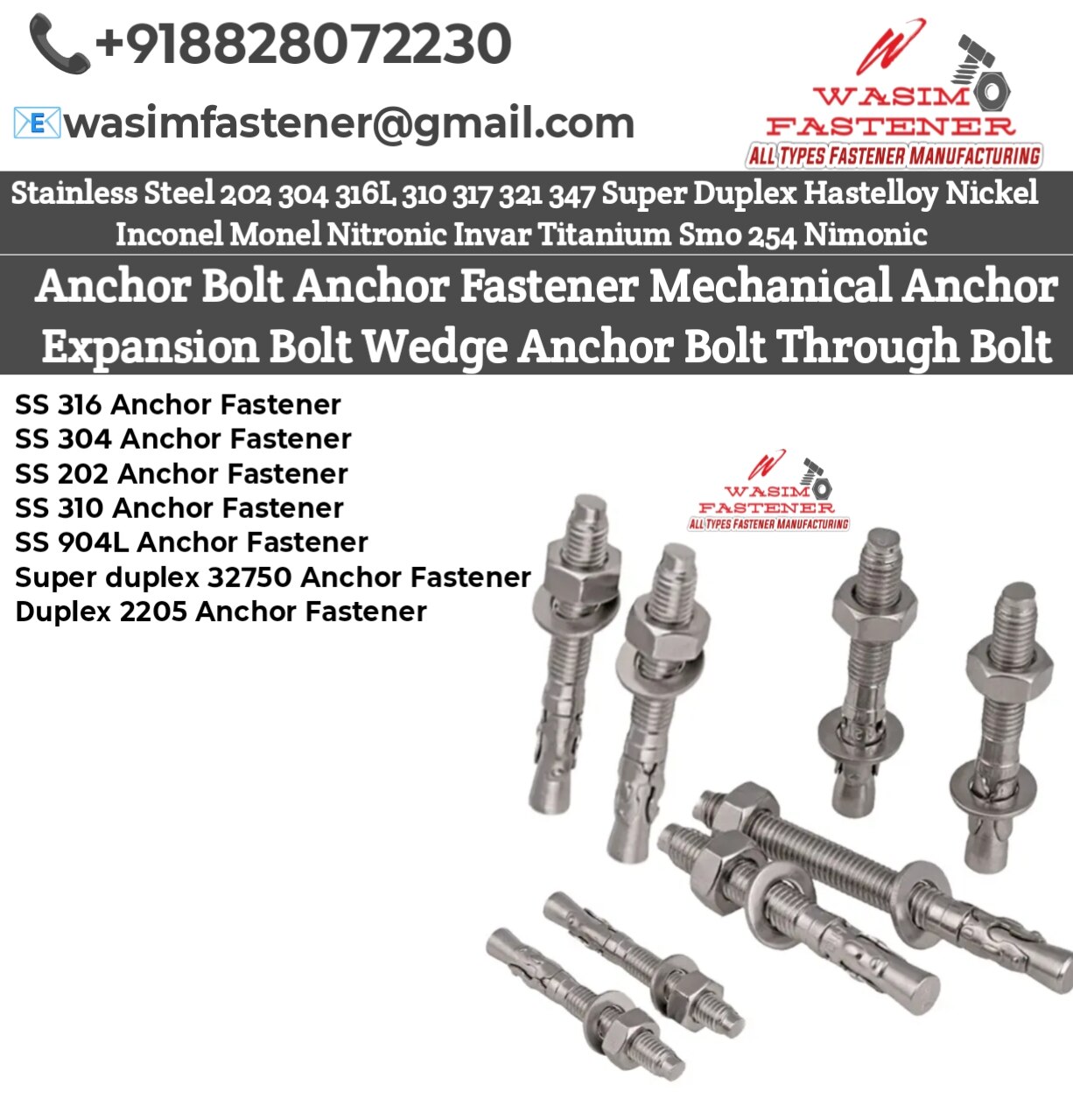 Stainless Steel Anchor Fastener – SS 202 / SS 304 / SS 316 / SS 310 / SS 904L / Duplex 2205 / Super Duplex 32750 | Heavy Duty Concrete Mechanical Expansion Fastener